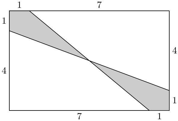 What is the area of the shaded region of the given \(8\times 5\) rectangle?