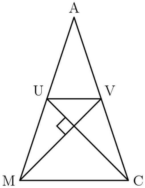 Triangle $A M C$ is isosceles with $A M=A C$. Medians $\overline{M V}$ and $\overline{C U}$ are perpendicular to each other, and $M V=C U=12$. What is the area of $\triangle A M C$ ?