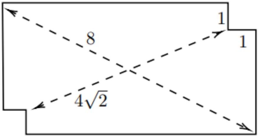 Daniel finds a rectangular index card and measures its diagonal to be 8 centimeters. Daniel then cuts out equal squares of side 1 cm at two opposite corners of the index card and measures the distance between the two closest vertices of these squares to be $4 \sqrt{2}$ centimeters, as shown below. What is the area of the original index card?