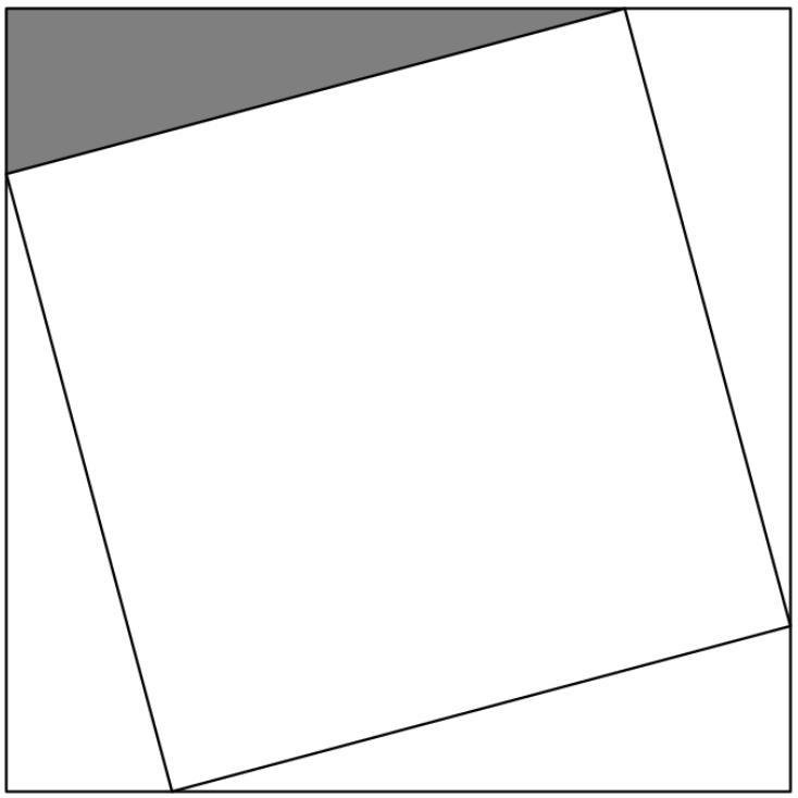 A square with area 3 has a square with area 2 inscribed in it. This creates 4 smaller congruent right triangles. What is the ratio of the smaller leg to the larger leg in the shaded right triangle?