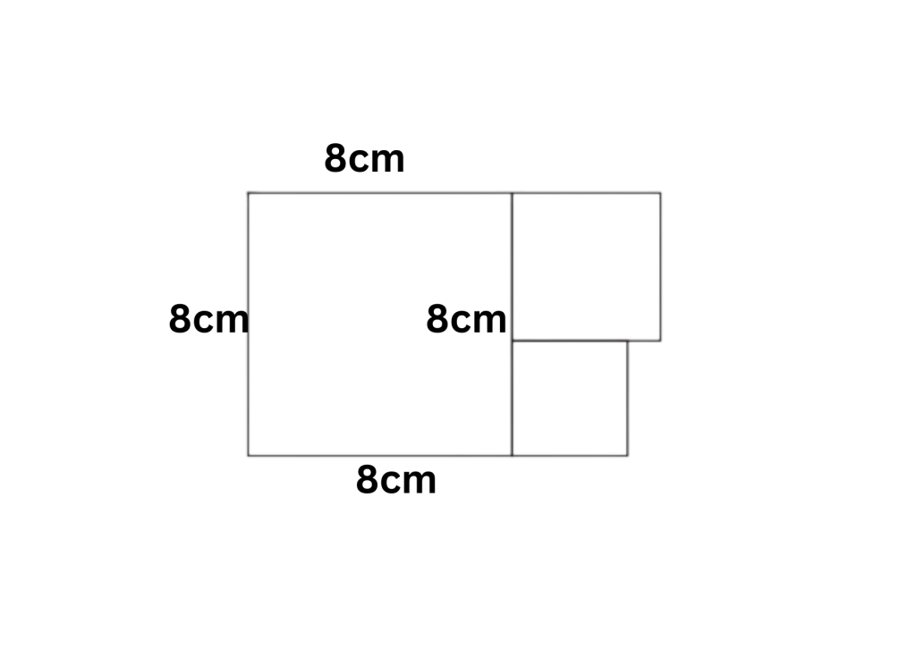 Thus the medium square has a side length of = \(8-3\) cm = \(5\)cm.