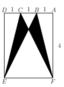 Rectangle $D E F A$ below is a $3 \times 4$ rectangle with $D C=C B=B A=1$. The area of the "bat wings" (shaded area) is