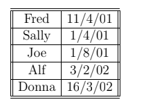 Mrs Harris asked five of her Year 4 children to record their birthdates in a table as shown below