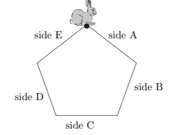 Raelene the rabbit started at the dot and travelled clockwise around the regular pentagon with equal sides.
