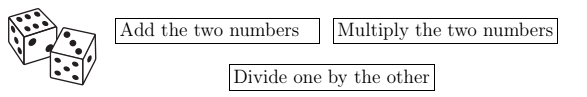 In a number game you throw 2 six-sided dice to get 2 numbers from 1 to 6 . You then choose one instruction card from the three shown below to find out what to do with the two numbers.