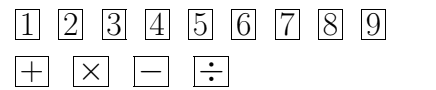 In a card game, there are 9 single-digit cards and 4 operation cards as shown.