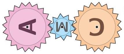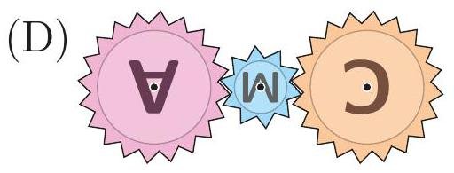 Nadia is sitting on the opposite side of the desk facing Aidan. Which of the following diagrams best represents the view from Nadia's side of the desk?