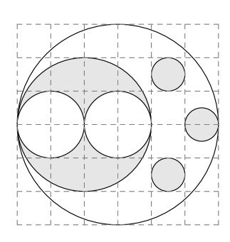 The region shown below consists of 24 squares, each with side length 1 centimeter. What is the area, in square centimeters, of the largest circle that can fit inside the region, possibly touching the boundaries?