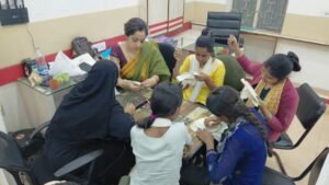A key highlight of the week was the special session conducted by Ms. Ujjoyini, who introduced participants to basic textile handcraft. Students were guided to create floral patterns using fundamental stitching techniques on cloth, learning how to transform simple threads into decorative designs. The session encouraged creativity, patience, and fine motor skills, while also showing how needlework and craft-based learning can be incorporated into classroom engagement.