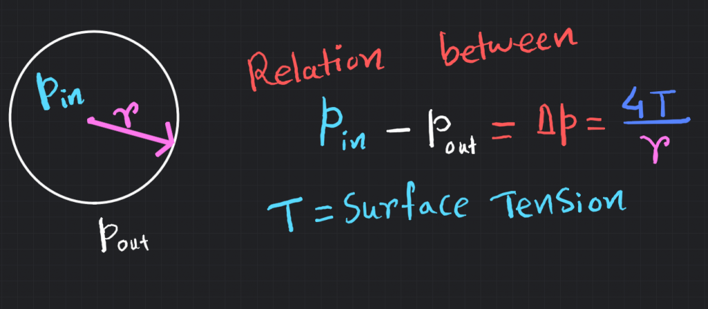 $$p_{in} - p_{out} = \Delta p = \frac{4T}{r}$$